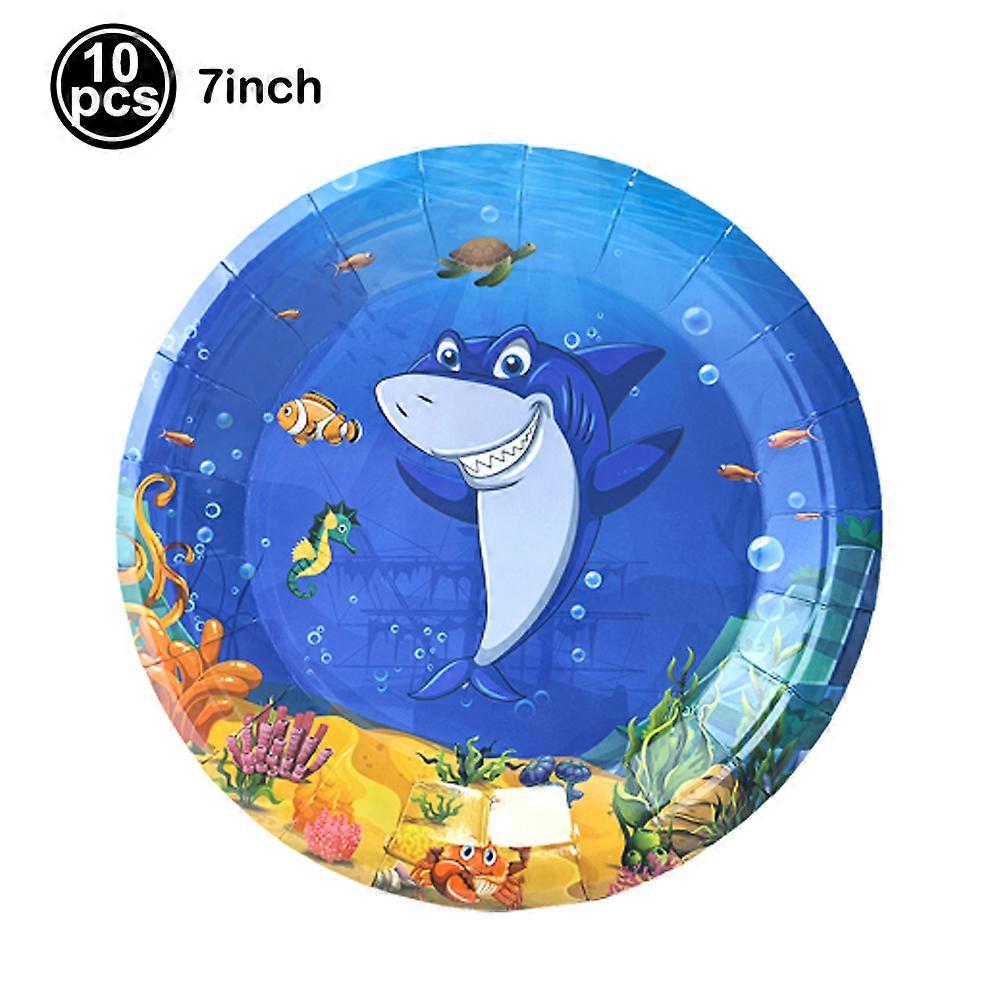 Shark Theme Disposable Tableware Paper Plates Cups Napkins Tablecloth Banner Kids Ocean Marine Animal Birthday Party Decor
