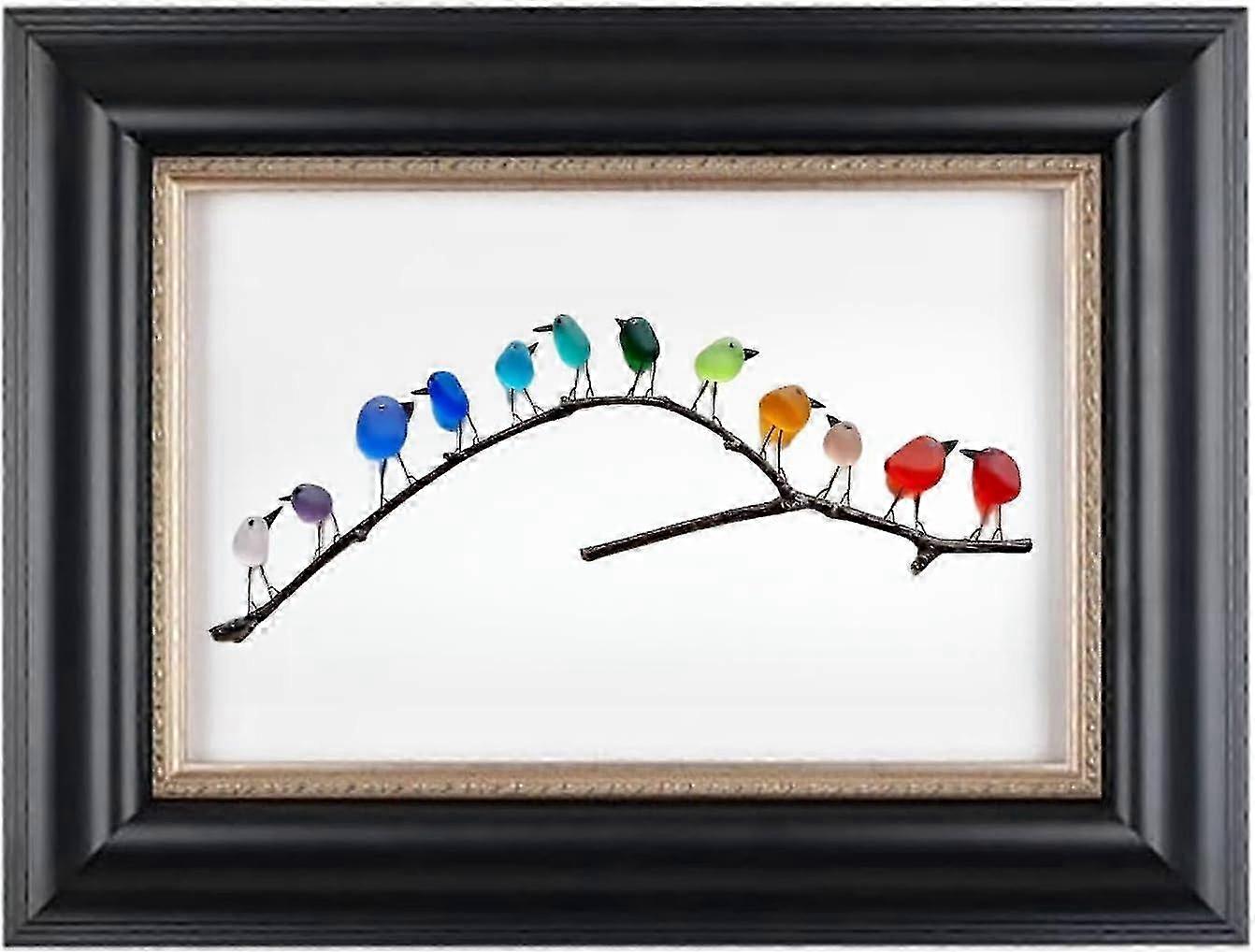 Rainbow Bird Wall Decor Picture with Sea Glass & Driftwood for Artistic Gifts