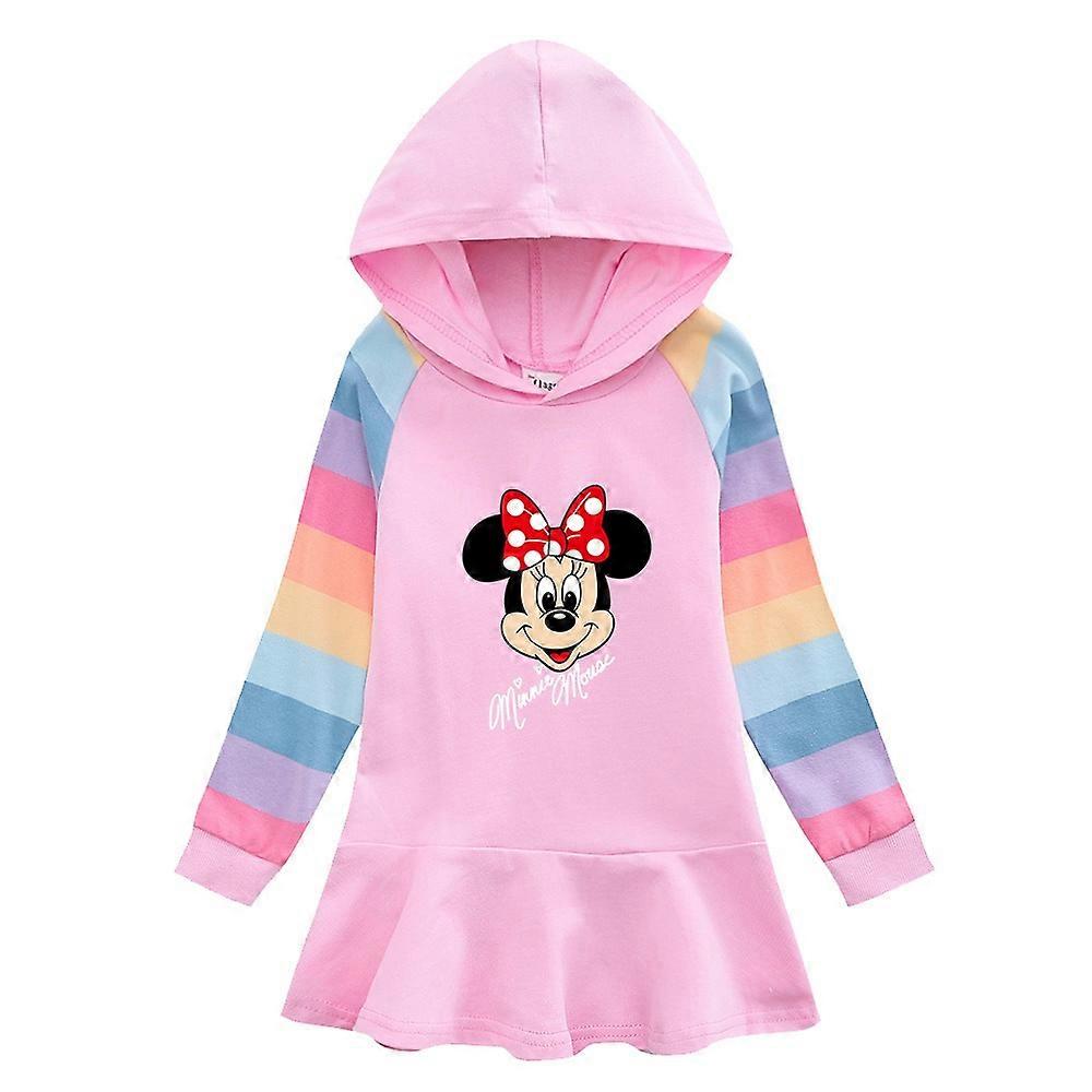 Quality Cotton Disney Girls Dress Minnie Mouse Autumn Bluey Clothing for Children Pink Long Sleeve Kids Clothes Hooded Fashion