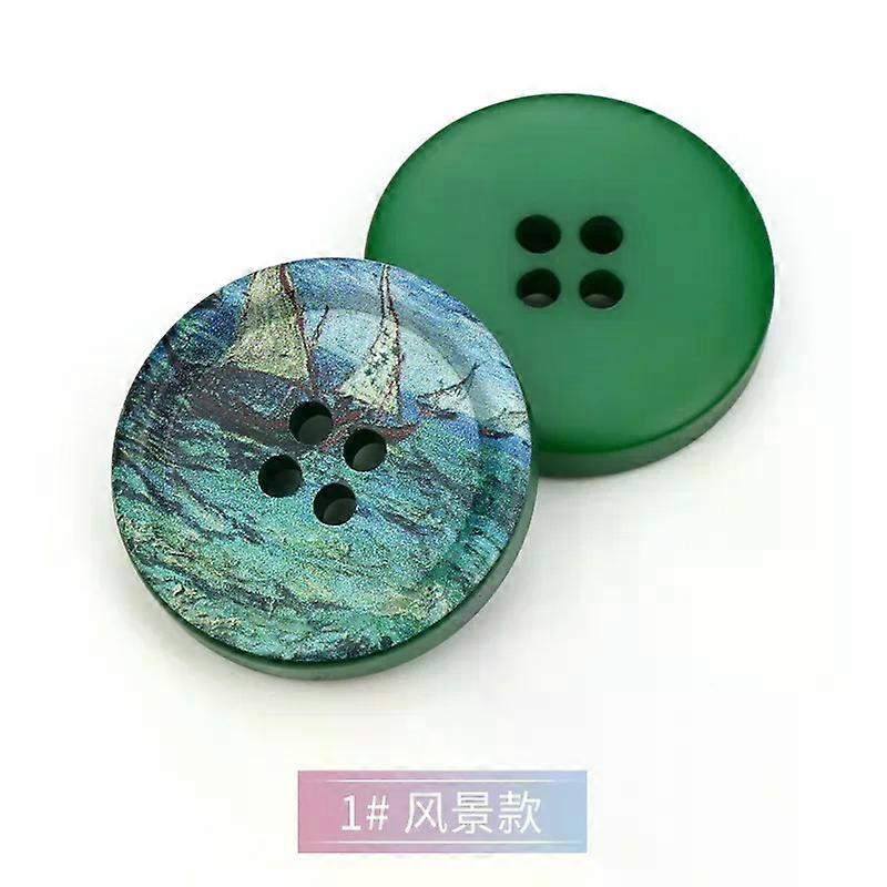 10Pcs Buttons 4Holes Oil Painting Style Resin DIY Buttons for Clothing Four Eye Button Overcoat Suit Decoration Sewing Accessory