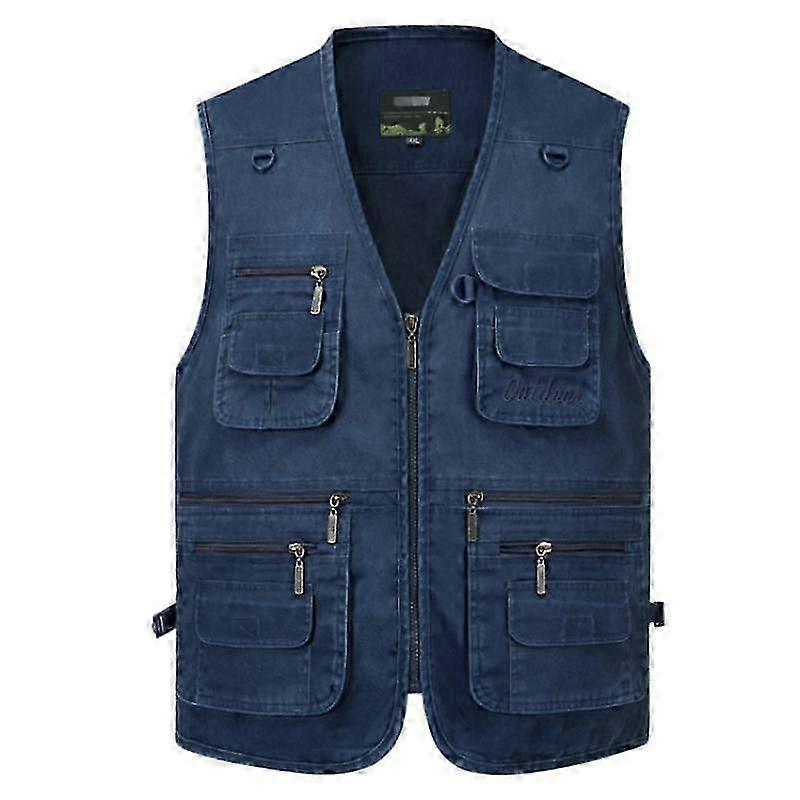 Men's Vest Casual Jacket Spring And Autumn Loose Style Cotton Multi-pocket Zipper Windproof Coat Collarless Sleeveless Jacket For Man!ZZ49