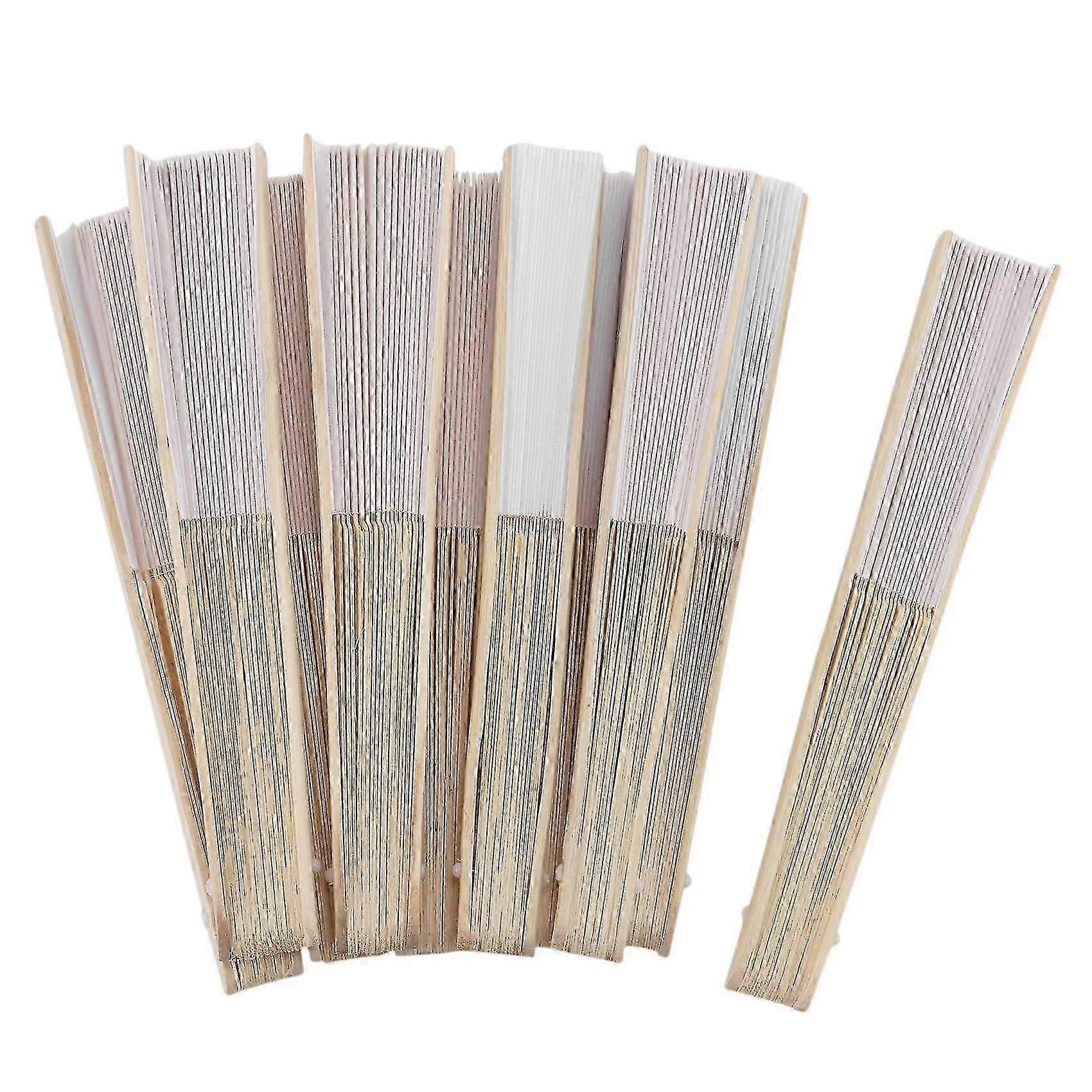 White Fabric Hand Fan for Wedding Party, 21cm Silk Hand Fan, 10 Pcs
