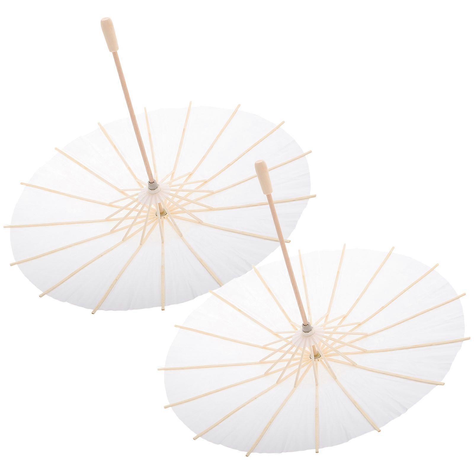 White Oil Paper Umbrella 2Pcs Handmade Paper Parasol for Party Cosplay