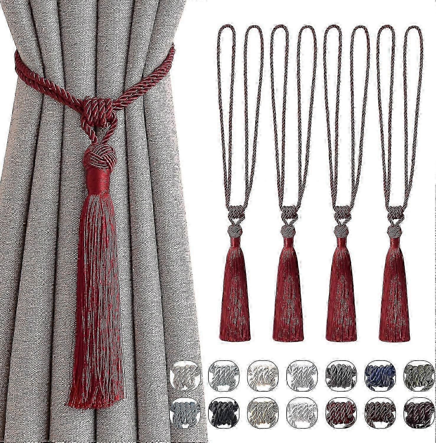 Curtain tiebacks handmade braided rope knot, European style long tassel for home.