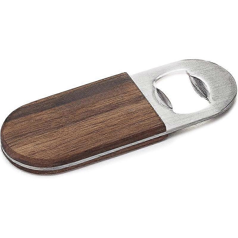 Handheld Bar Bottle Opener | Flat Cap Bottle Opener | Durable Bartender or Tool | Heavy Duty Stainless Steel & Walnut Finish | Mini 4.25"