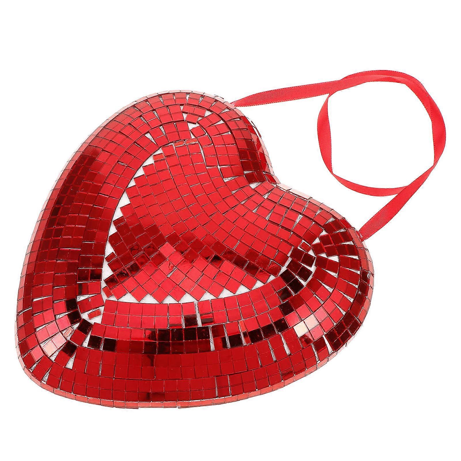 Red Heart Shaped Mirror Disco Ball for Decoration with Ribbon 4.72 Inches in Diameter