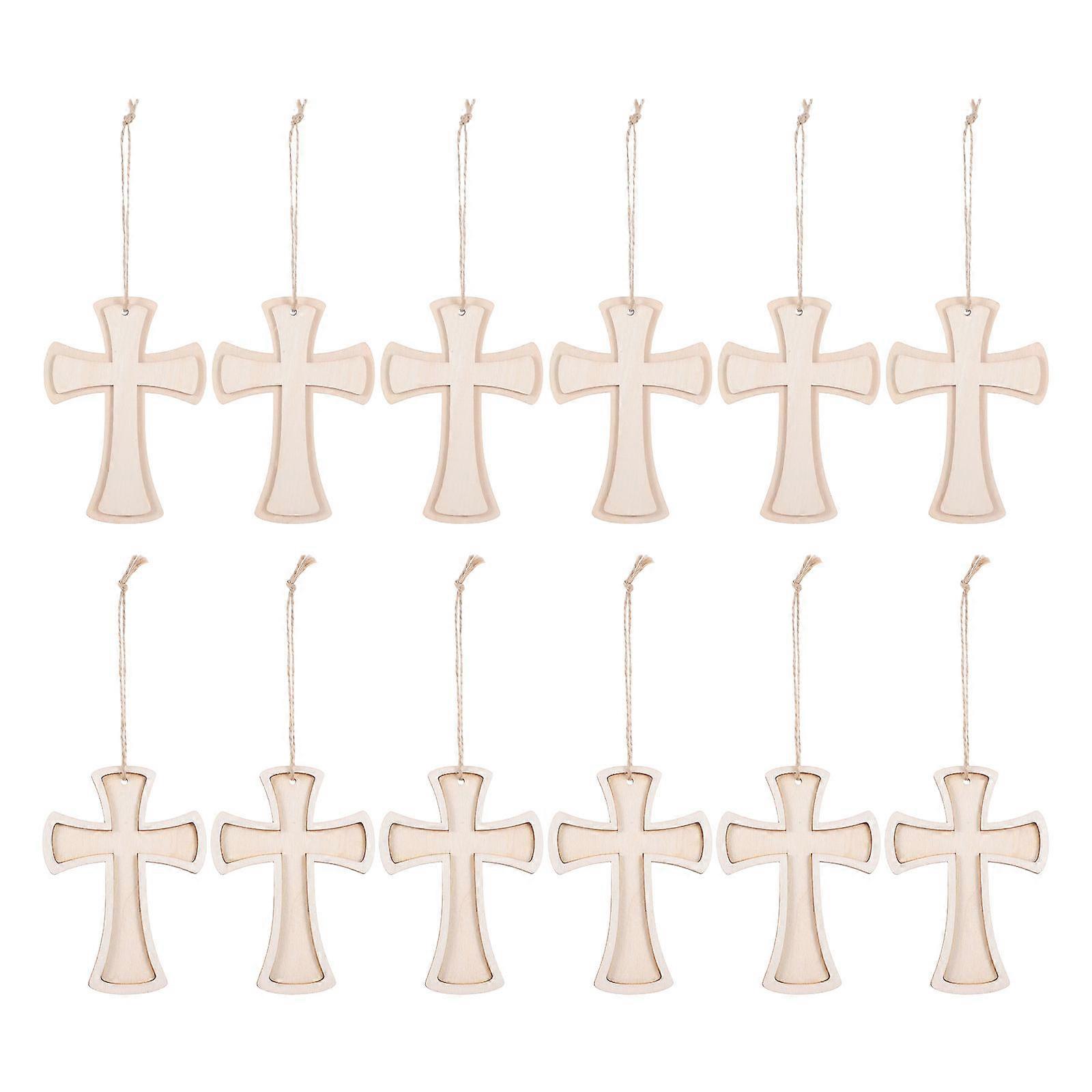 Wooden Cross Pendants 12Pcs Unfinished Decorative Crafts For Adults And Kids Light Yellow Color DIY Painting