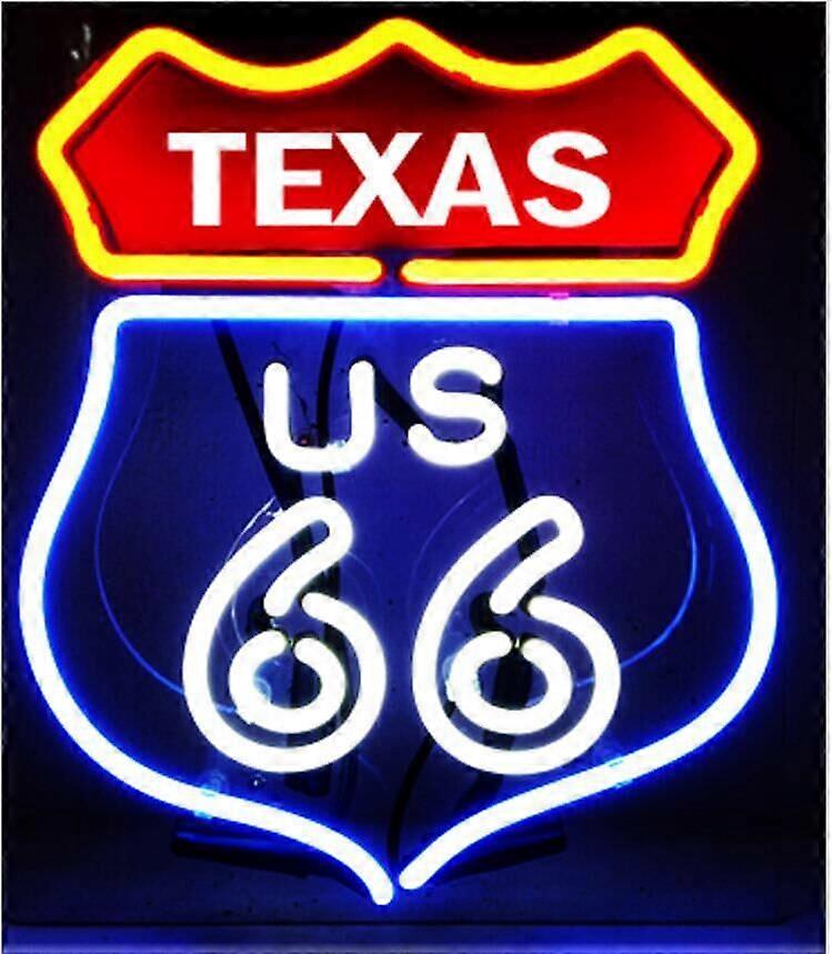 TEXAS State & Route 66 Real Glass Neon Sign - Handmade Vintage Americana Wall Art for Lone Star & Road Trip Decor - 10"x9"
