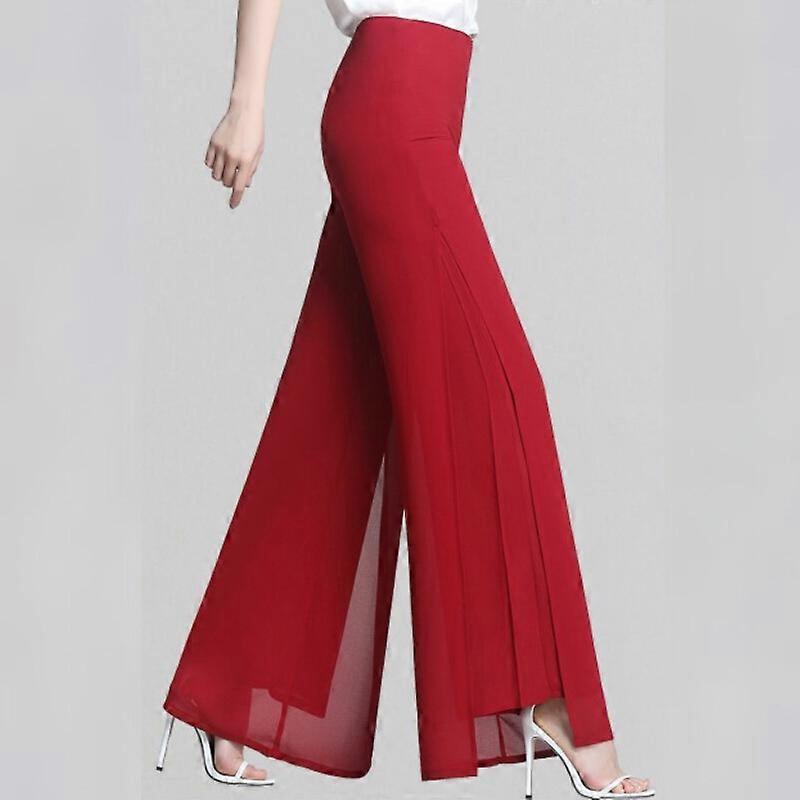 Women Chiffon Wide Leg Pants Culottes Split Trousers Summer Dance Office Casual