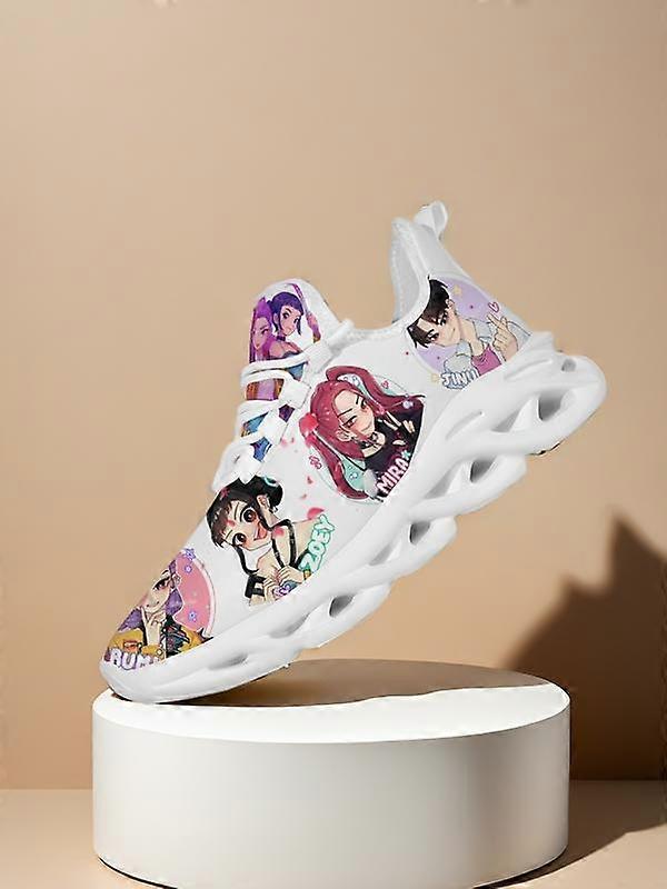 Women's Casual Anime Print Sneakers, Lightweight Mesh Upper, Durable Eva Sole, Lace-Up Low Top Shoes for All Seasons