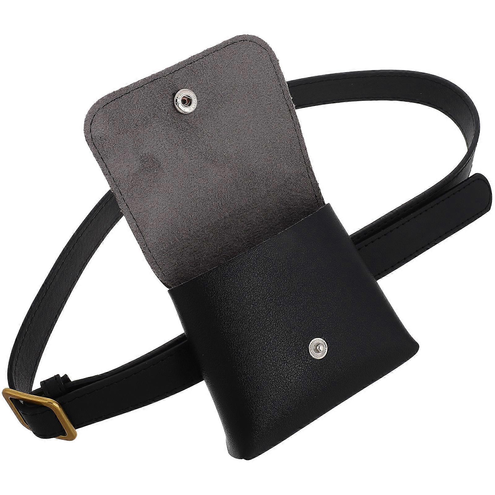 Retro Decorate Thin Belt Vintage Fashion Waist Bag for Women Black Imitation PU Alloy 7.8 Inches