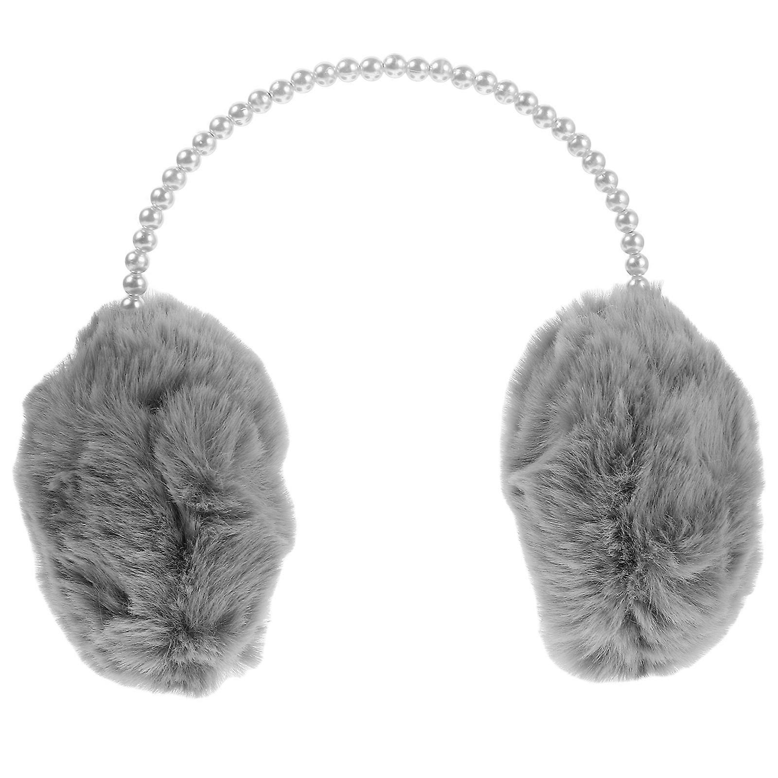 Fluffy Plush Ear Warmers for Winter Use Grey Adjustable Ear Muffs