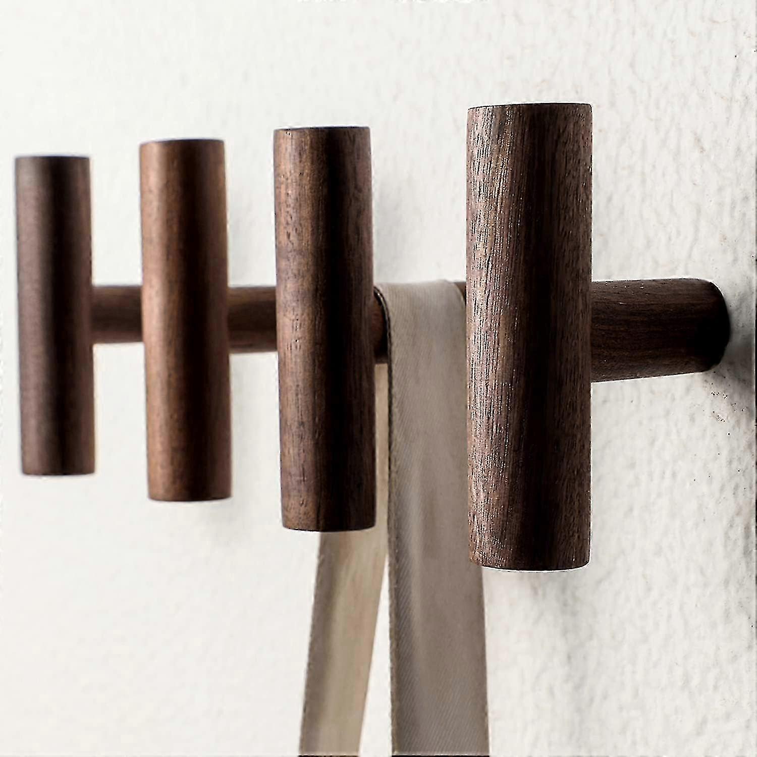 Natural Wood Coat Hooks Wall Mounted 4-Pack, Vintage Style Organizer