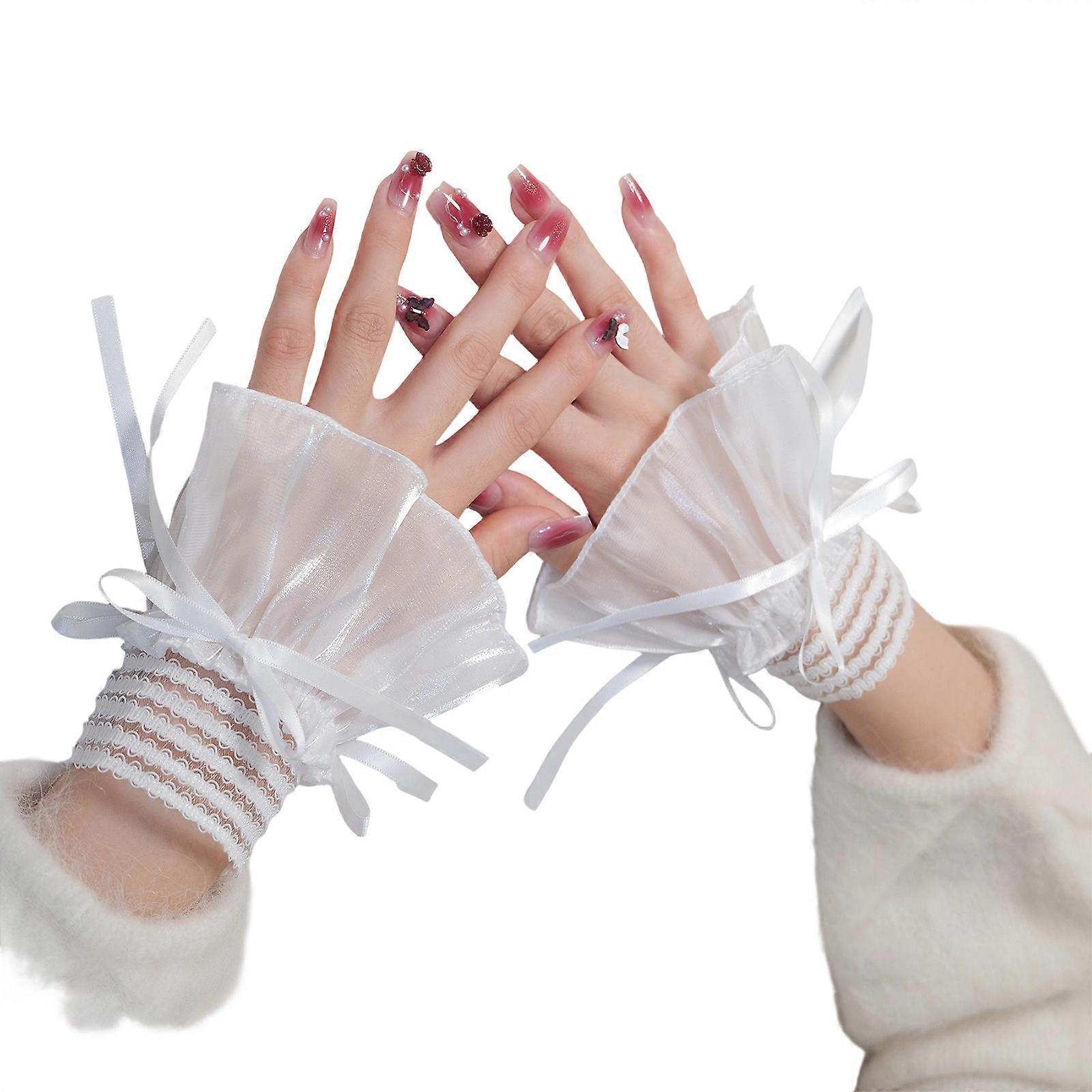 Women Fingerless Gloves Lolitas Bows Ruffle Arm Sleeves for Wedding Bridal Dances Party Princess Fancy Dress Costumes White