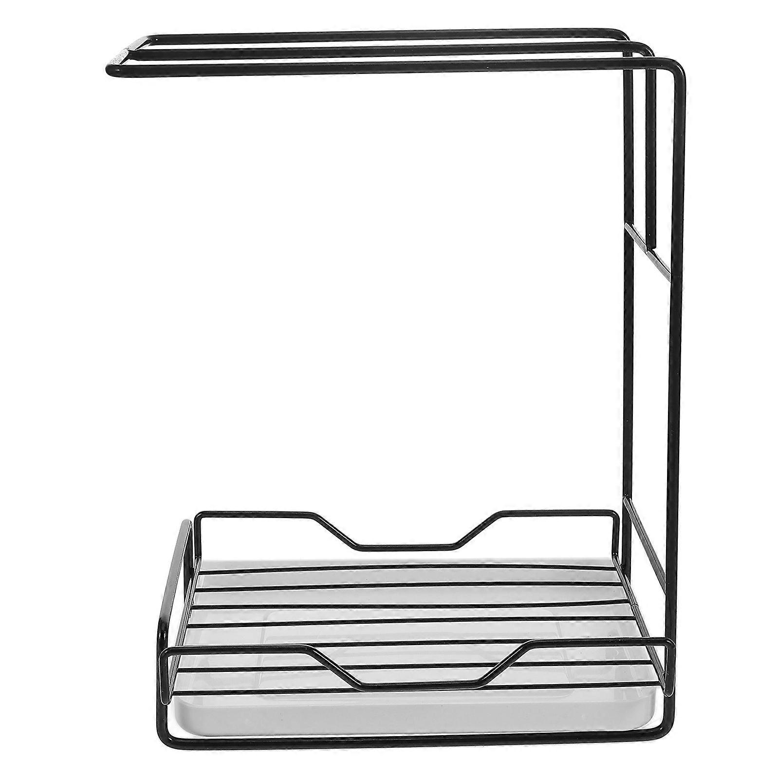 Black Kitchen Sink Sponge Holder with Drip Tray for Organizing Sponges and Dishcloths Compact Iron and Plastic Design 7.5 x 4.5 Inches
