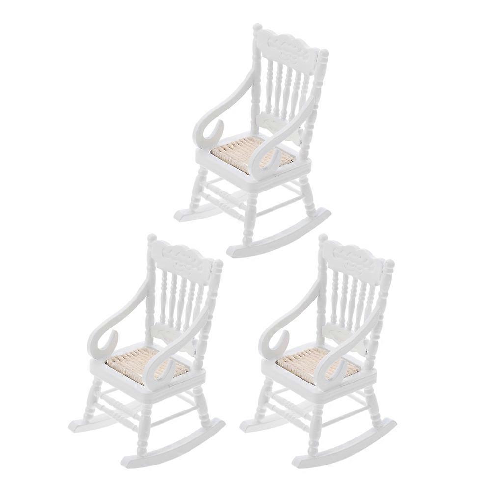Wooden Chair Mini for Dollhouse Play 3Pcs Miniature Rocking Chair Set