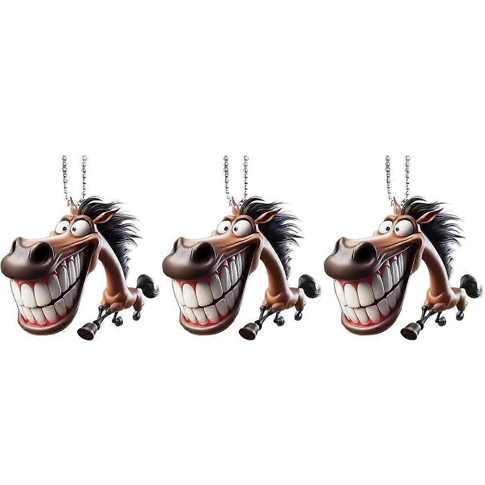 2D Cute Big Mouth Horse RearView Mirror Pendant Auto Interior Car Realistic Animal Hanging Ornament Car Interior Hanging Pendant