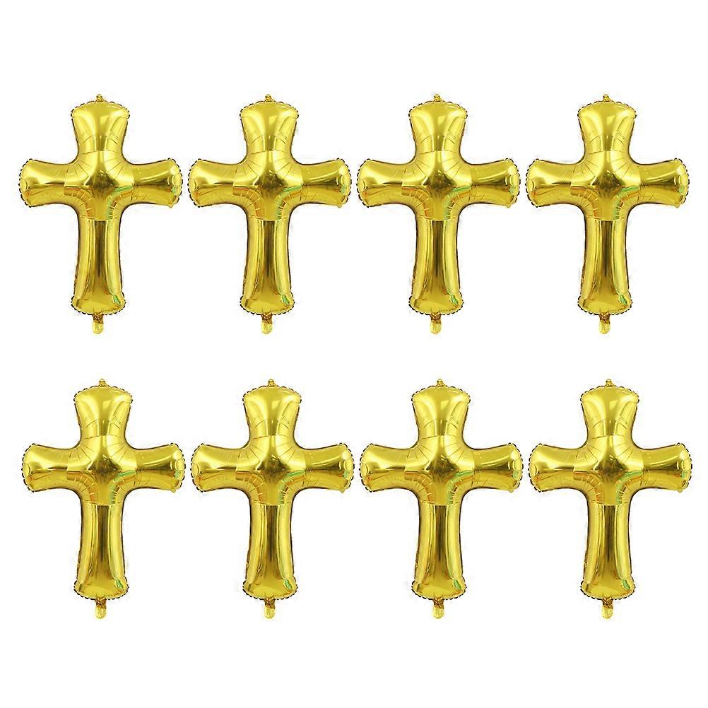 Golden Aluminum Foil Cross Balloon for Baptism Decor 8Pcs Pack