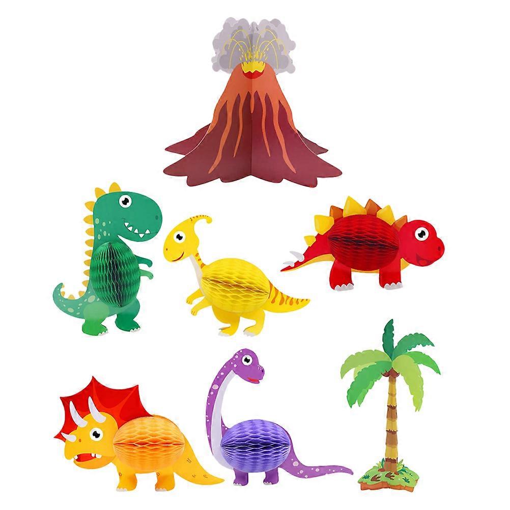 Dinosaur Themed Party Honeycomb Centerpiece 7Pcs Table Decor Ideal For Birthday Celebrations Assorted Color Paper Decorations