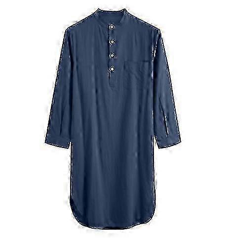 Comfortable cotton nightshirt for men, long sleeve sleepwear breathable fabric