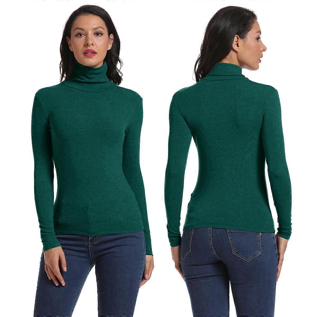 Women's Basic Turtleneck Tops Soft Stretch Ribbed Knit Cotton Long Sleeve Shirts
