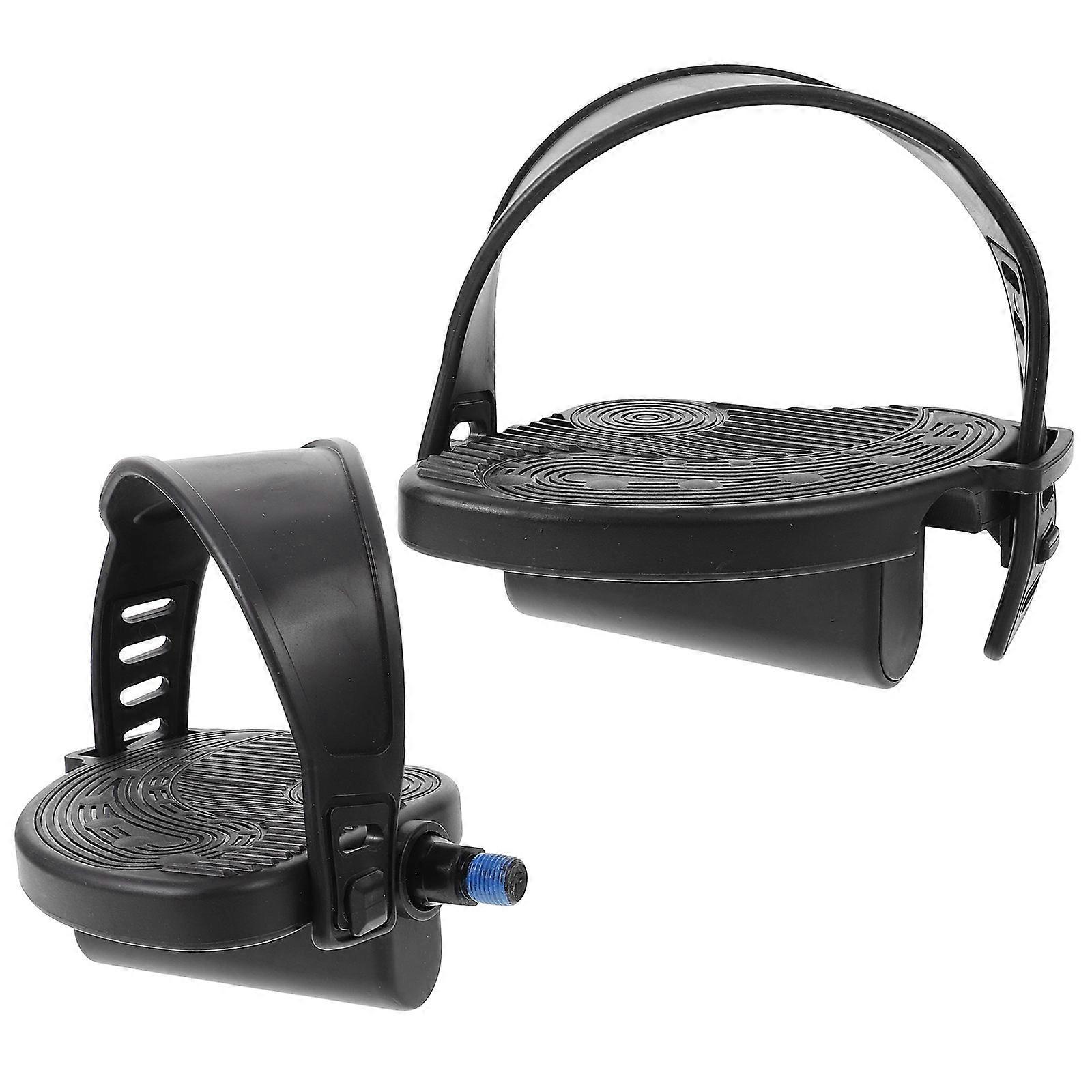 2 Sets Bike Pedals with Straps for Indoor Use Durable Plastic Black Color