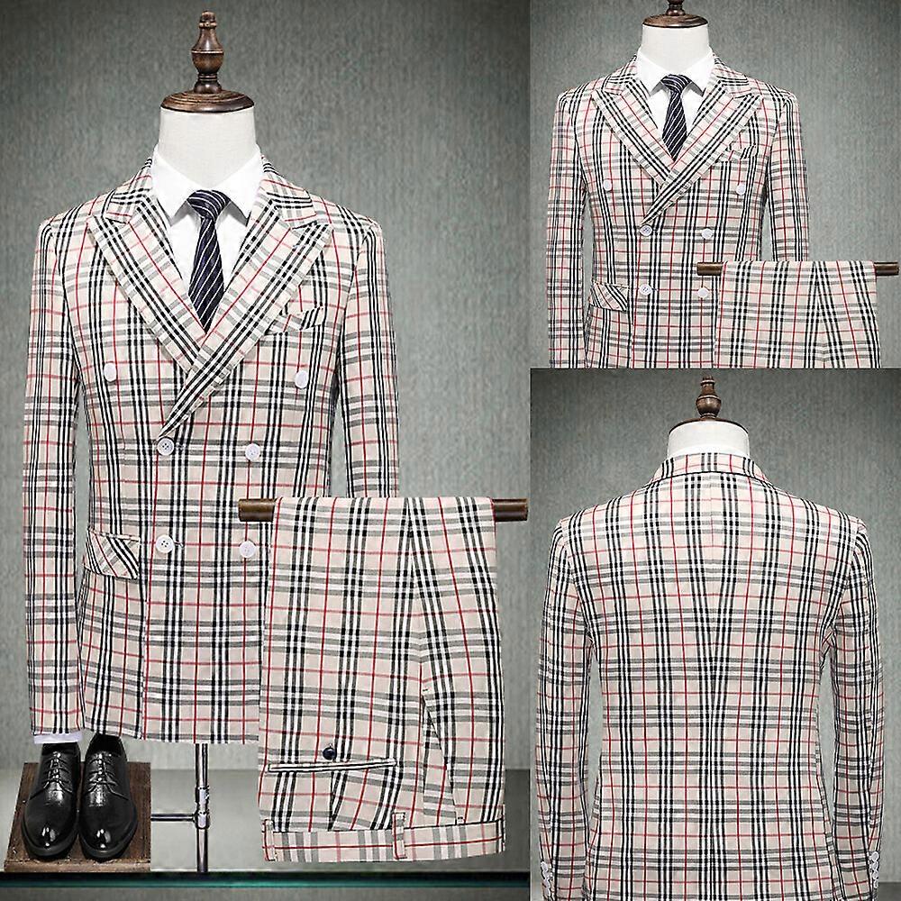 British Style 3 Pieces Men Check Groom Tuxedos For Wedding Formal Prom Men Suits