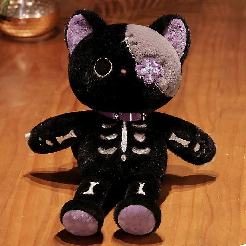 Dark Serie Kawaii Black Devil Skeleton Cat Plush Toy Creative Stuffed Animal Gothic Skull Fluffly Kitten for Kids Halloween Gift