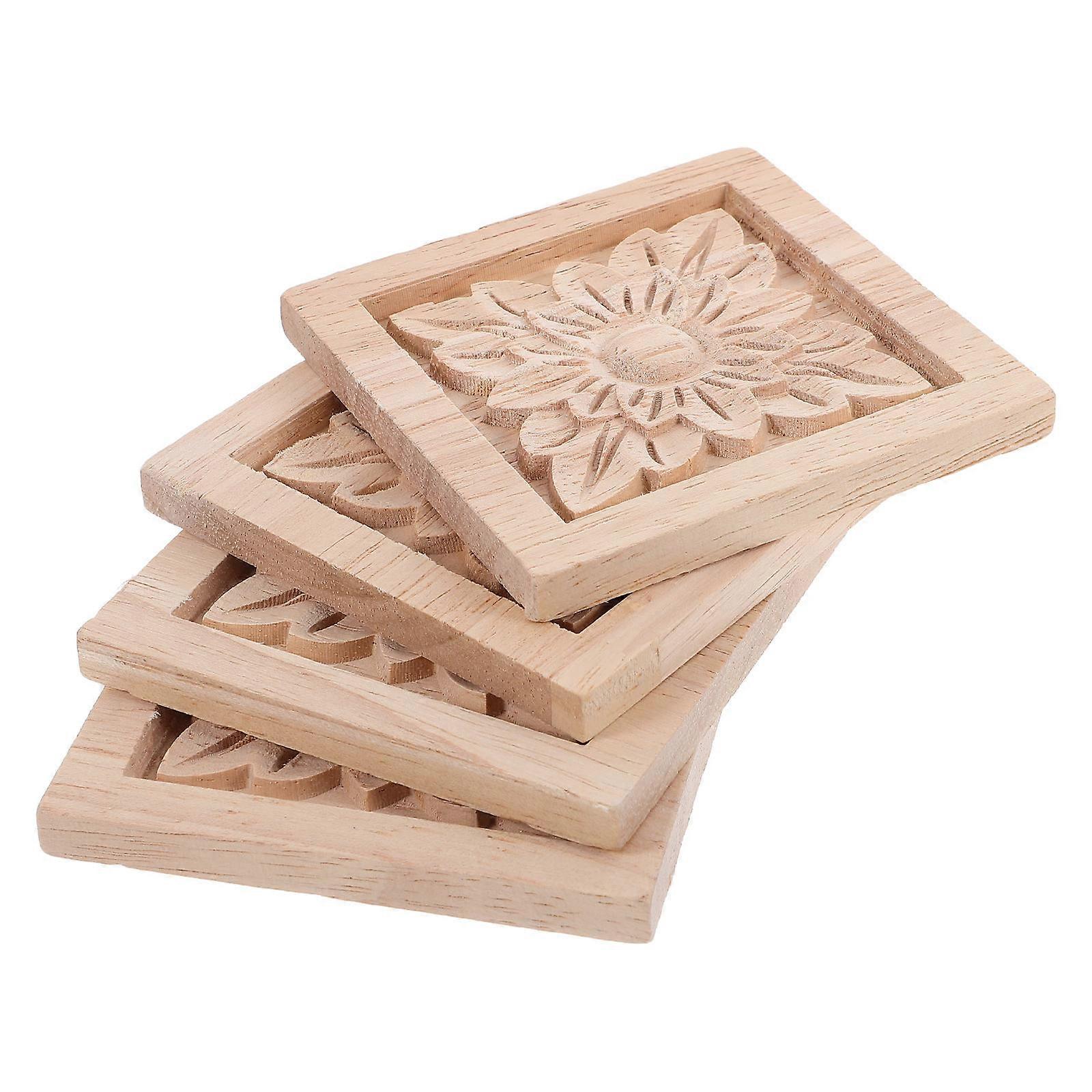 Carved Wood Decal Wood Appliques for Decoration 4Pcs Light Yellow Finish