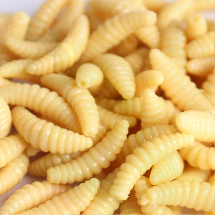 50pcs/lot Silicone Bait Maggot Grub Soft Fishing Lure 2cm 0.4g Artificial Bread Smell Worms Gear For Winter Glow Accessories