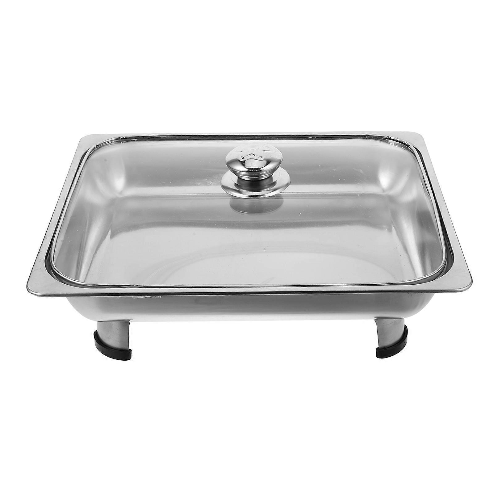 Stainless Steel Buffet Server with Glass Lid for Home Silver Material Removable Foot 12.5 x 8.5 Inches