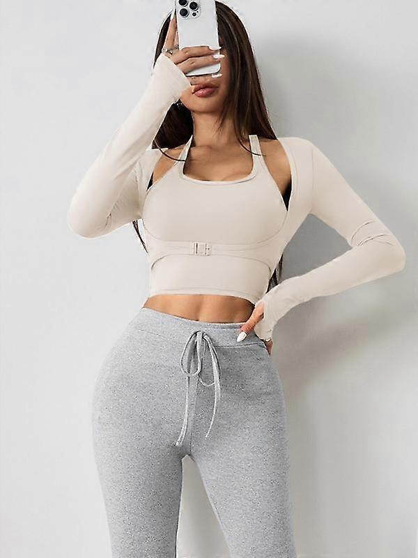 Women's Halter Crop Tank Top & Thumb Hole Sports Tee Set, Sleeveless Top & Buckle Front Sports Top Set, Gym Yoga Exercise Clothing Set for W