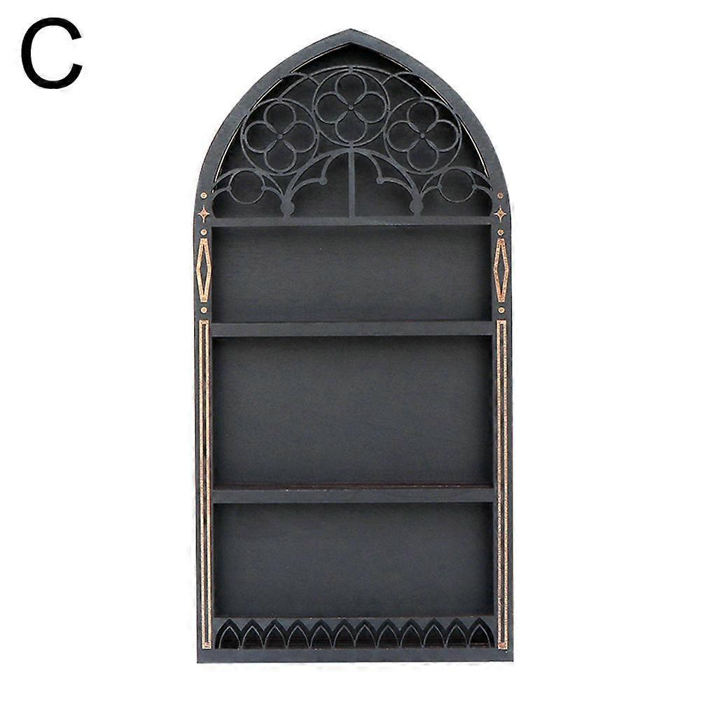Wall Display Shelf Wood Church Window Design Stones Holder Black Wooden Shelf for Office Gothic Room Decor Crystal Stones Holder