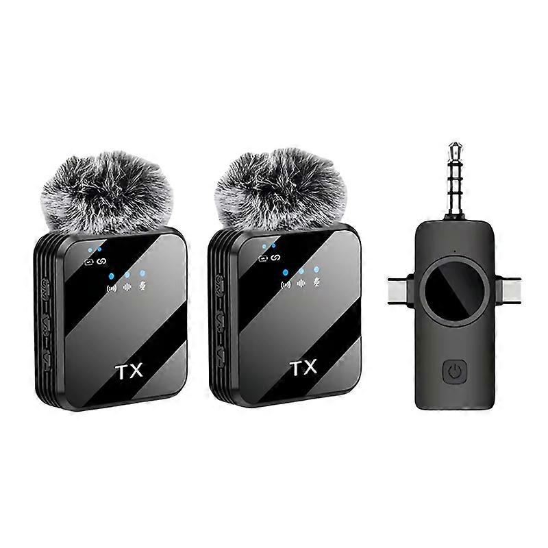 3-in-1 Wireless Lavalier Microphone with Noise Reduction - Compatible with iPhone, Android for Video Recording, Podcast