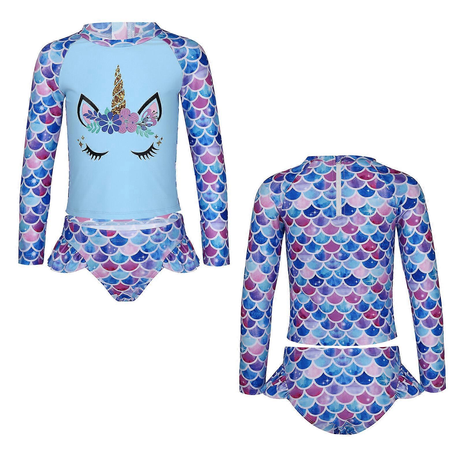 Kids Girls Swimsuit Rashguard Set Summer Beach Tankini UPF 50+ Beach Swimwear