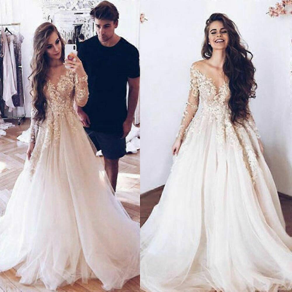 Princess Long Sleeves Wedding Dresses Lace Appliques A-Line V Neck Bridal Gowns