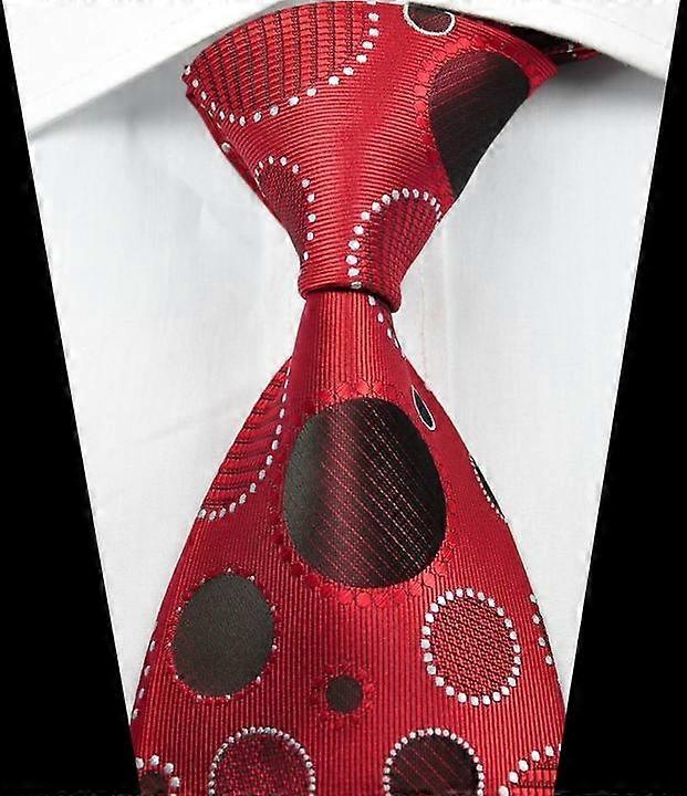Hot Classic Geometric Red White Black JACQUARD WOVEN 100% Silk Men's Tie Necktie
