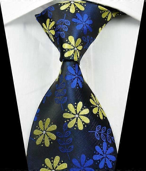 Hot Fashion Floral Blue Yellow White JACQUARD WOVEN 100% Silk Men's Tie Necktie