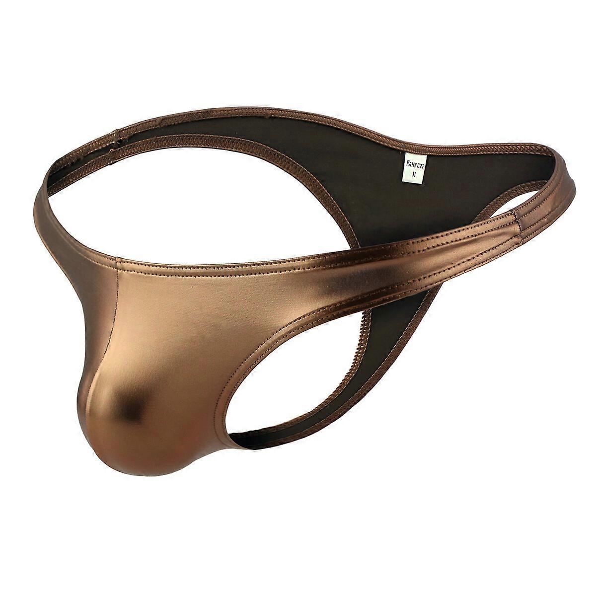 Mens Shiny PU Leather Boxer Briefs Shorts Bulge Pouch Thongs Low Rise Underwear