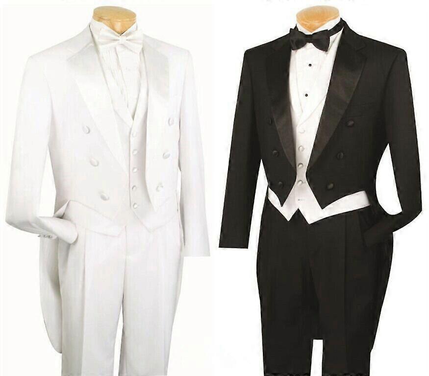 Men's Formal Suit Tuxedo Prom Wedding Groom Classic Fit With Tail Black & White