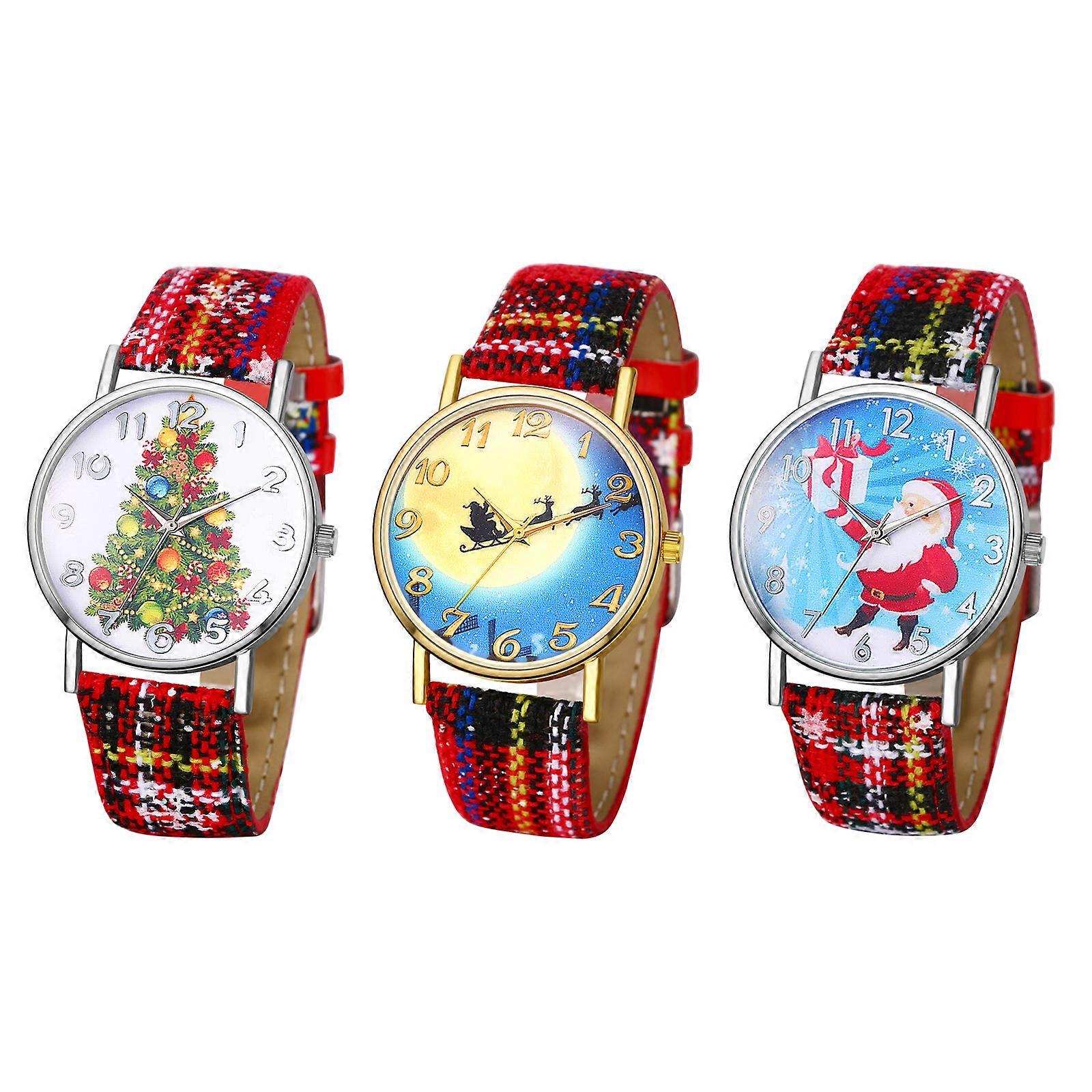 Lancardo 3Pcs/Set Women Girls Snowflake Sparkly Big Dial Christmas Tree Santa Reindeer Wristwatch Leather Quartz Watch Xmas Gift