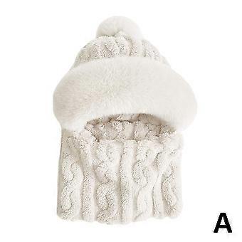 Winter Knitted Hat Scarf Mask One-Piece Plush Pompom Beanies for Women Fleece Lining Warm Bonnet Ears Neck Collar Beanies Cap