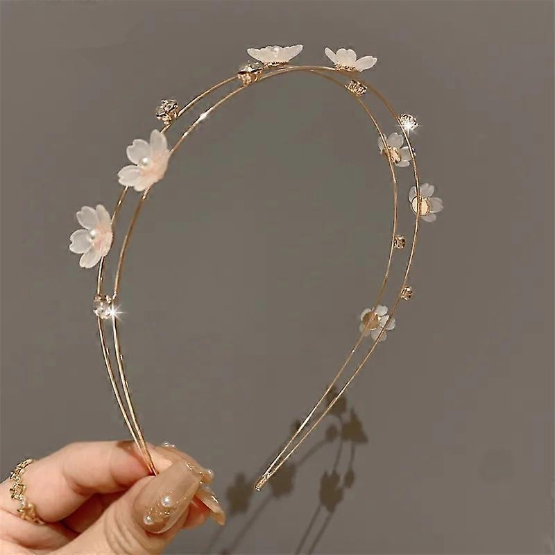 New Double Layer Metal Hairband Flower Pearl Headband for Women Headwear Shiny Rhinestone Hair Band Hoop Hair Accessories