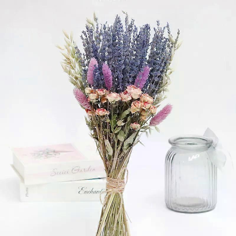 Lavender Flower Bouquet Rose Hare's Tail Stargazer Mixed Natural Air-dried Real Flowers Valentine's Day Gift Home Decoration