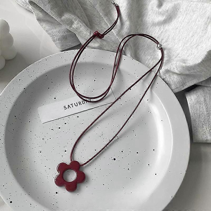 Simple Flower Long Rope Necklace Women Hollow Flower Pendant Necklace Adjustable Knot Sweater Chain Party Wedding Jewelry Gifts