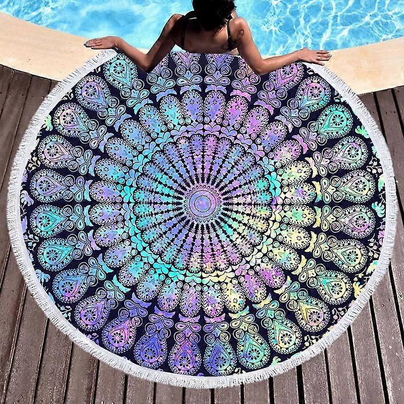 Round beach towel, microfiber, quick-drying, absorbent, bohemian tassel beach towel