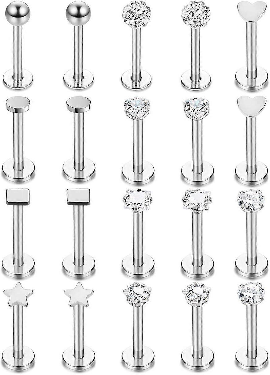 20 Pcs Stainless Steel Labret Studs Lip Rings for Men Women Nose Studs Cartilage