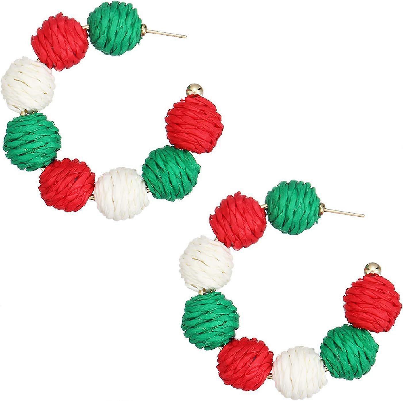 Qucyy Raffia Hoop Earrings for Women Boho Colorful Rainbow Beaded Earrings