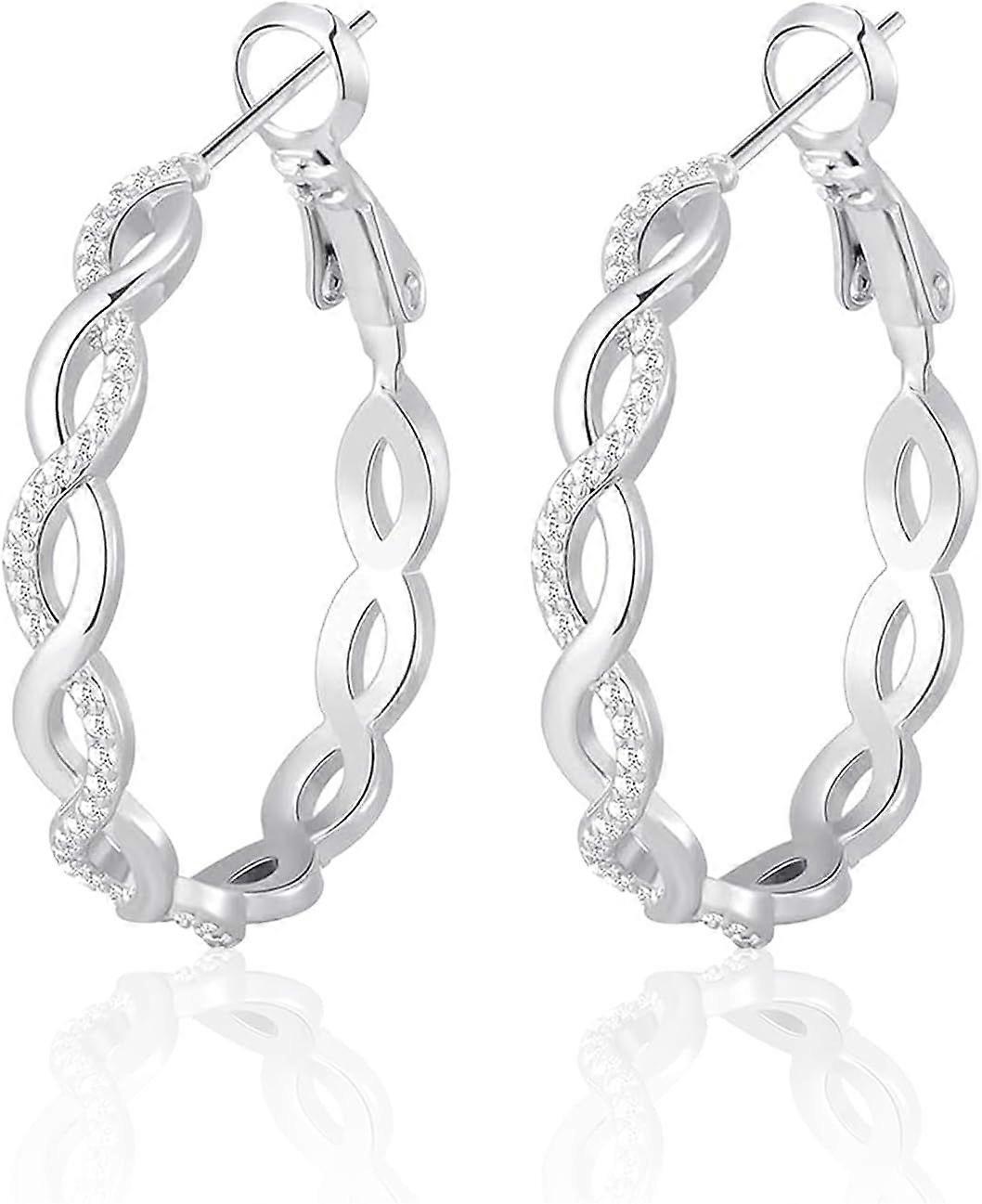 Special Present: These sterling silver hoop earrings are crafted with care , making them an ideal present. Whether it's for friends, family, or significant others, these hypoallergenic earrings are ideal for birthdays, anniversaries, weddings, and other special occasionsQuality Materials: Crafted from 925 sterling silver, these hoop earrings are lead-free, nickel-free, and hypoallergenic, ensuring they are gentle on sensitive skin. The thick design enhances comfort, allowing every women to confidently showcase her beautyTwisted Hoop Earrings Design: The twisted design symbolizes infinite true love and strength. Sparkling AAAAA Cubic zirconia embellishments add elegance to these large hoop earrings, making them stand out on any occasion and complementing various outfitsSatisfactory Service: prioritizes customer satisfaction, offering a wide range of lightweight hypoallergenic earrings. With a commitment to quality jewelry, their responsive customer service team ensures prompt assistance to address any concerns or inquiries.Easy to Put On & Take Off: The clasp closing mechanism of these sterling silver hoop earrings makes them effortless to wear and remove, ideal for daily use. Their ideal size caters to both women, providing comfort even during sleep and various activities