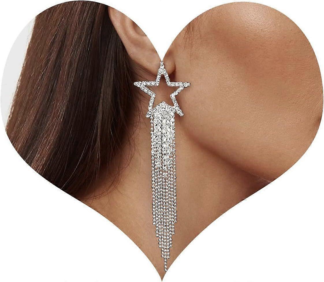 Rhinestone Star Stud Earrings Star Tassel Dangle Earrings for Women Sparkly